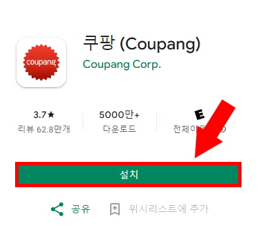 1) 쿠팡 앱을 자신의 스마트폰에 설치합니다.