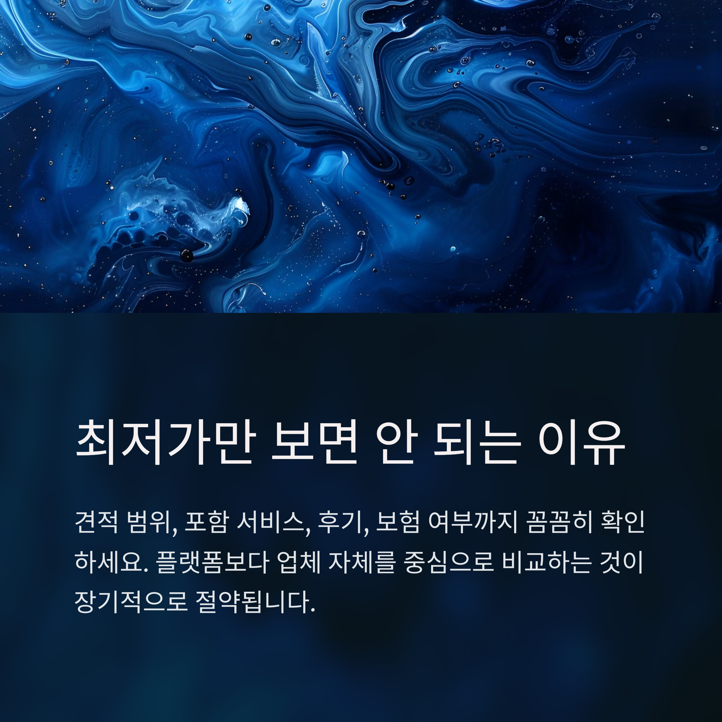 최저가만 보고 선택할 경우, 추가 요금, 파손, 작업 지연 등의 위험이 있다는 것입니다