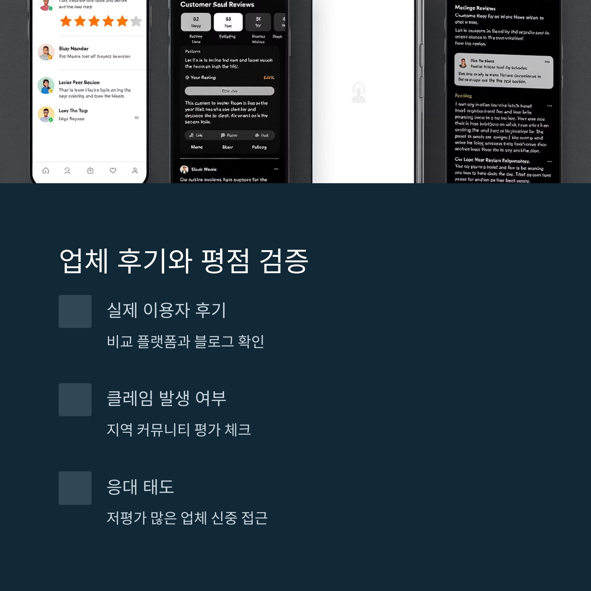 해당 업체의 후기, 클레임 발생 여부, 응대 태도까지 체크하세요